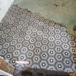 - Fliesenlegearbeiten mit verschiedenen Fliesenformen und Mustern